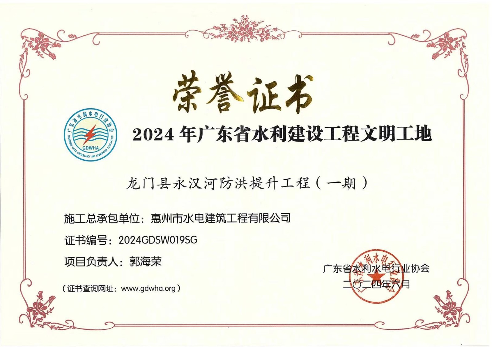惠州市水電建筑工程有限公司成立于一九六四年四月,隸屬惠州市水務(wù)集團(tuán)有限公司,是一家國(guó)有綜合性施工企業(yè),主營(yíng)水利水電工程、房屋建筑、市政工程等施工業(yè)務(wù)。公司擁有水利水電工程施工總承包一級(jí)、建筑工程施工總承包一級(jí)、市政公用工程施工總承包一級(jí)、公路工程施工總承包三級(jí),公路路基、路面及建筑裝修裝飾專業(yè)承包二級(jí),環(huán)保工程、機(jī)電安裝、河湖整治、輸變電工程專業(yè)承包三級(jí)等經(jīng)營(yíng)資質(zhì)……